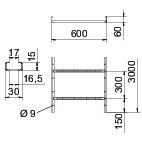 Kabelleiter mit gelochtem Seitenholm in der Seitenhöhe 60 mm mit eingenieteten, nach oben offenen C-Profil-Sprossen (Ausführung VS).