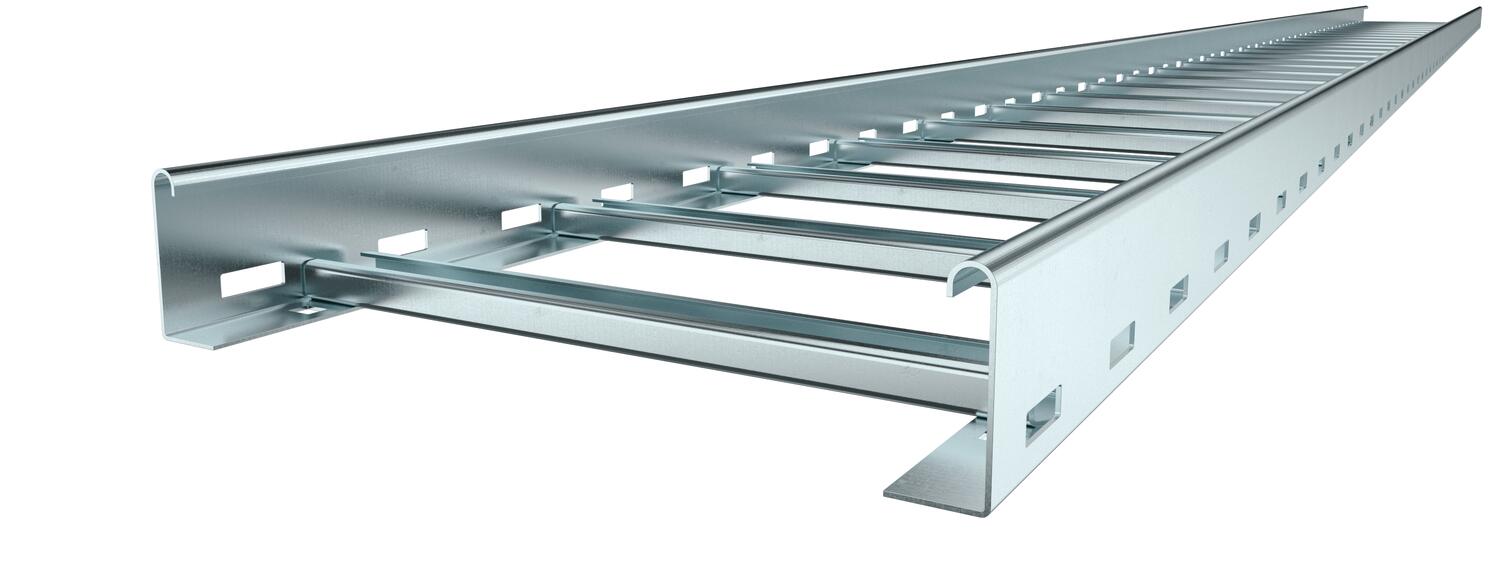 Kabelleiter für die waagerechte Verlegung von Kabeln und Leitungen. Einsetzbar als Normtragekonstruktion für den Funktionserhalt nach DIN 4102 Teil 12. Funktionserhaltklassen E30 bis E90. Mit eingenieteter nach oben offener C-Profil-Sprosse.