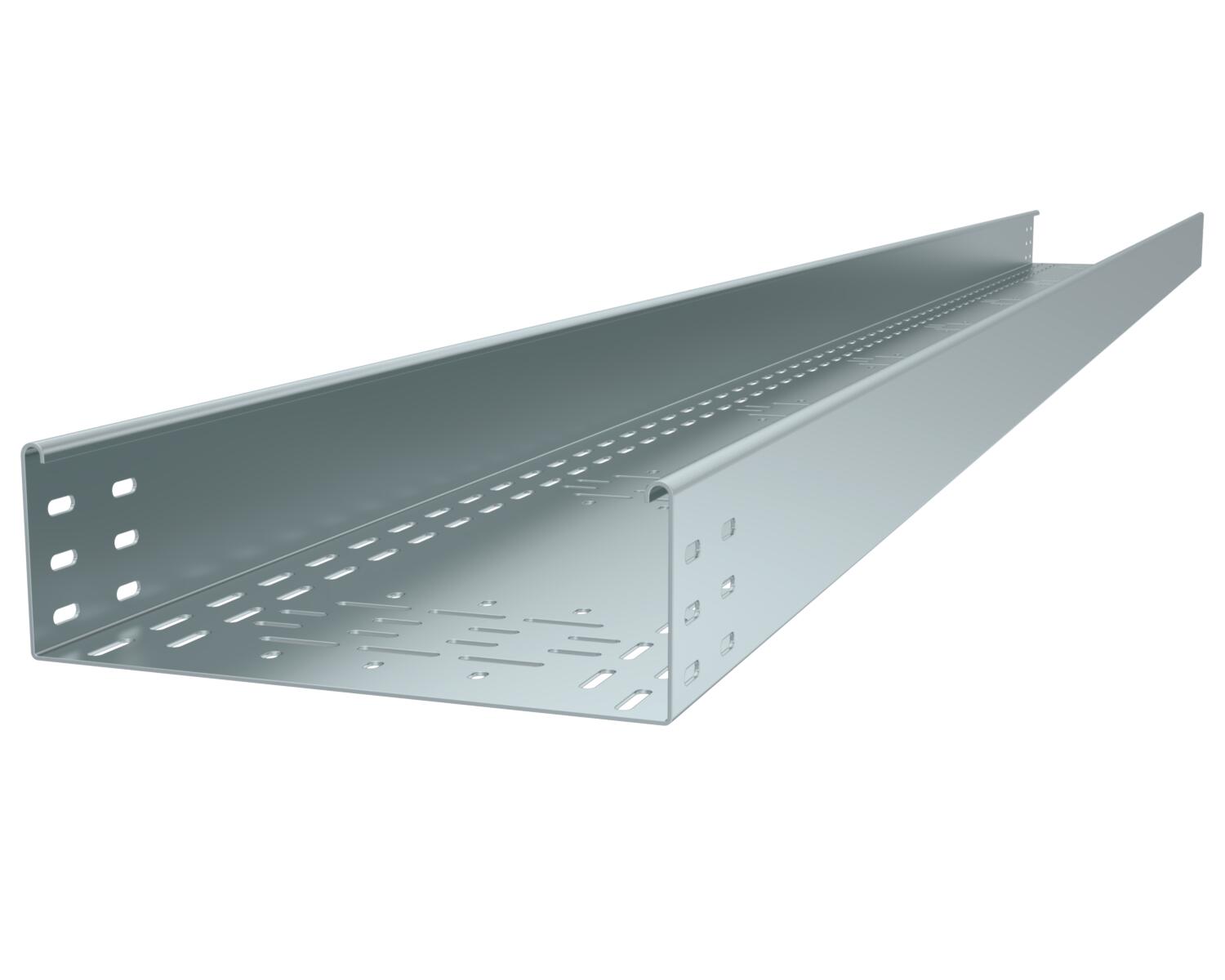 Schweres, begehbares Kabelrinnen-System BKRS mit Bodenlochung, in 100 mm Seitenhöhe.