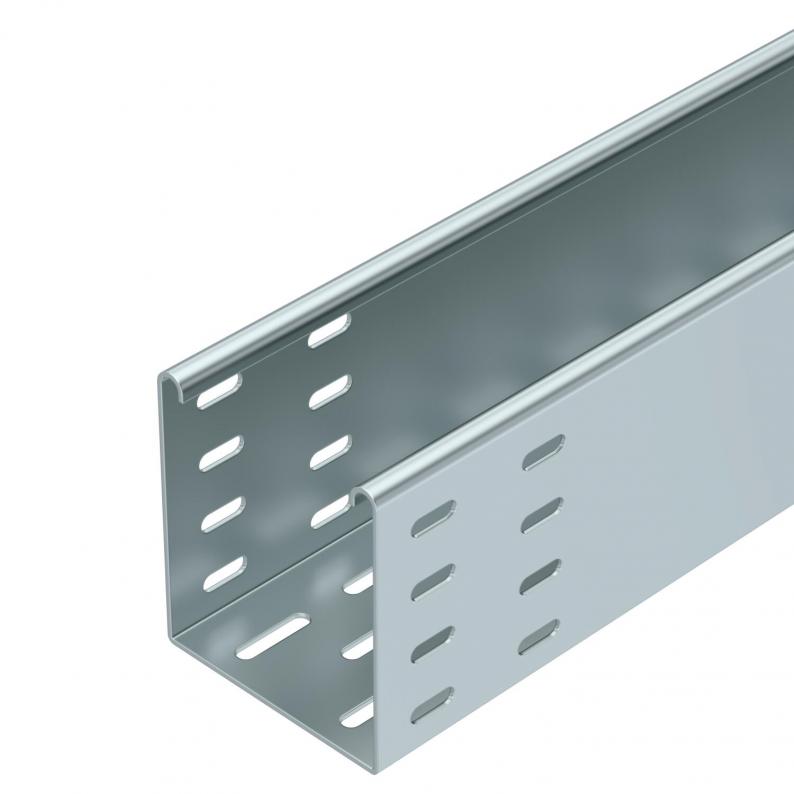 Schweres, begehbares Kabelrinnen-System BKRS mit Bodenlochung, in 110 mm Seitenhöhe.