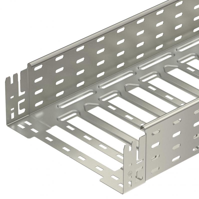 Ab Kabelrinnenbreite 200 mm mit 30% Lochanteil, nach VdS Richtlinie 2092 zum Einsatz unter Sprinkleranlagen geeignet.