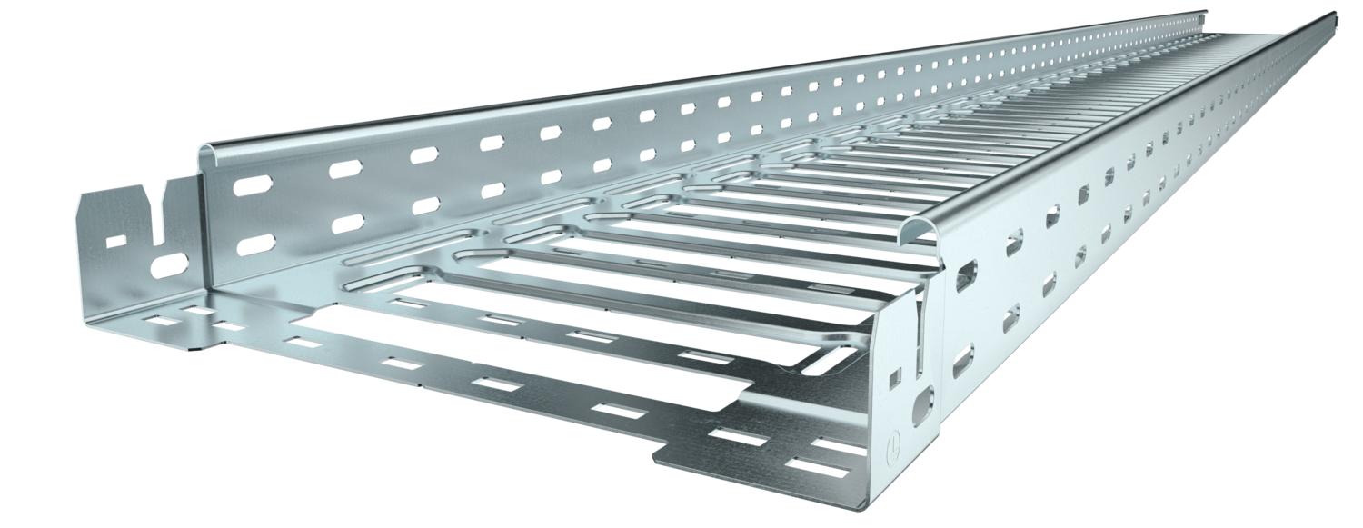 Ab Kabelrinnenbreite 200 mm mit 30% Lochanteil, nach VdS Richtlinie 2092 zum Einsatz unter Sprinkleranlagen geeignet.