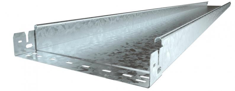 Ungelochte Kabelrinne mit integriertem Schnellbefestigungssystem. Die Nutzlänge der Kabelrinne beträgt 3.000 mm.