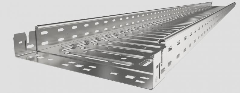 Die Kabelrinne verfügt über eine durchgängige Seitenlochung von 7 x 20 mm für die Installation zusätzlicher Verbindungs- und Montagebauteile.