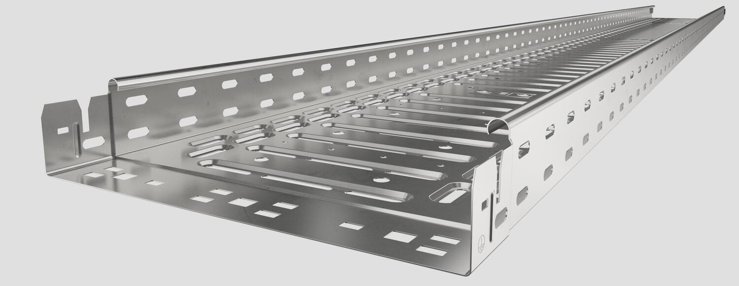 Kabelrinne mit integriertem Schnellbefestigungssystem. Die Nutzlänge der Kabelrinne beträgt 3.000 mm.