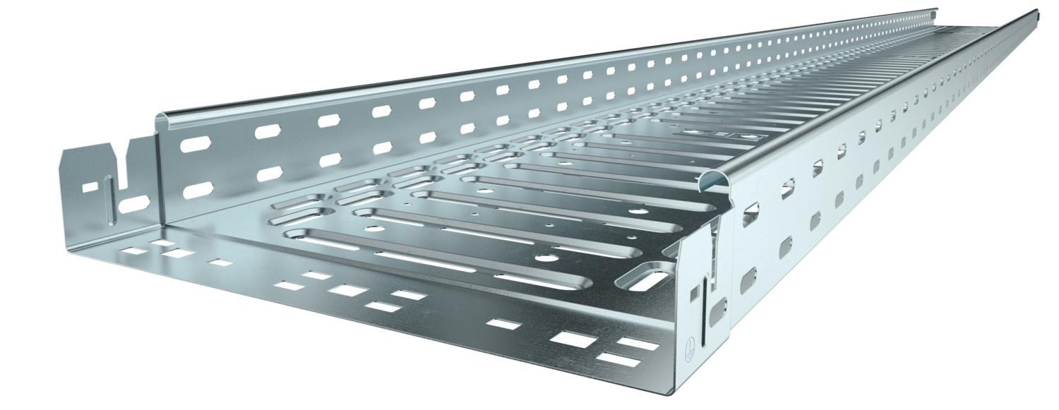 Kabelrinne mit integriertem Schnellbefestigungssystem. Die Nutzlänge der Kabelrinne beträgt 3.000 mm.