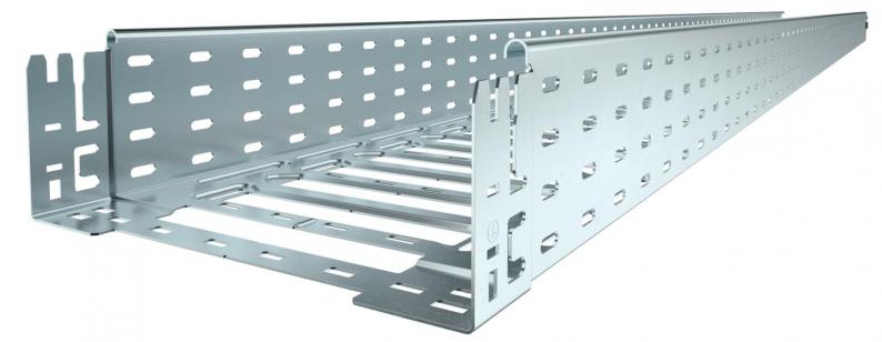 Ab Kabelrinnenbreite 200 mm mit 30% Lochanteil, nach VdS Richtlinie 2092 zum Einsatz unter Sprinkleranlagen geeignet.