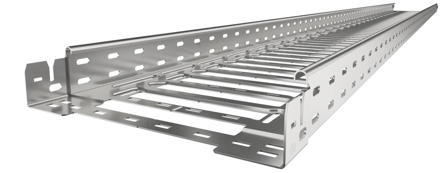 Kabelrinne mit integriertem Schnellbefestigungssystem. Die Nutzlänge der Kabelrinne beträgt 3.000 mm.
