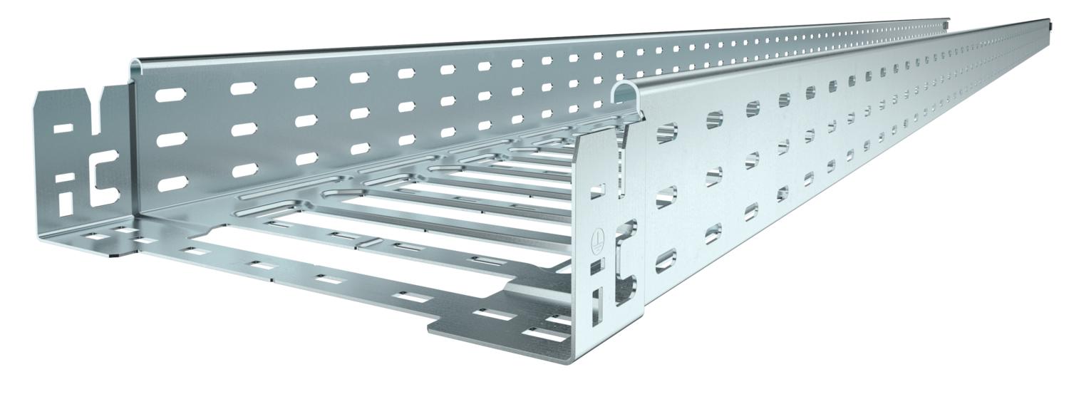 Ab Kabelrinnenbreite 200 mm mit 30% Lochanteil, nach VdS Richtlinie 2092 zum Einsatz unter Sprinkleranlagen geeignet.