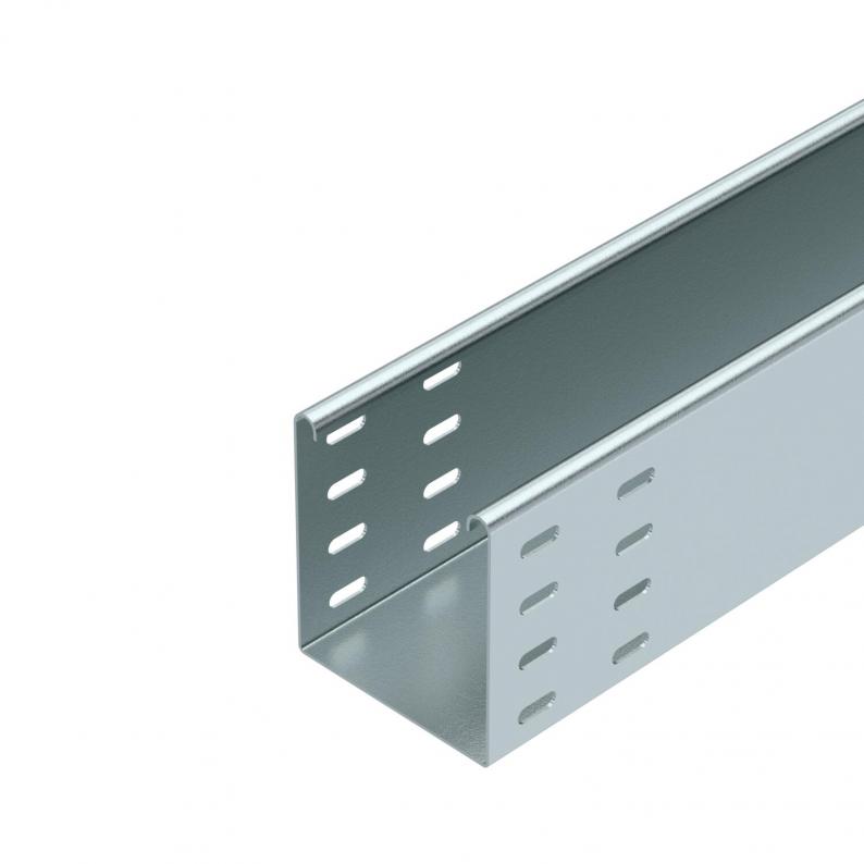 SKS = Schweres Kabelrinnen-System in Seitenhöhe 110 mm. Mit Verbinderlochung an beiden Kabelrinnenenden. Längsverbindung mit Längsverbinder RLVA 110 FS. Verbinder müssen separat bestellt werden.