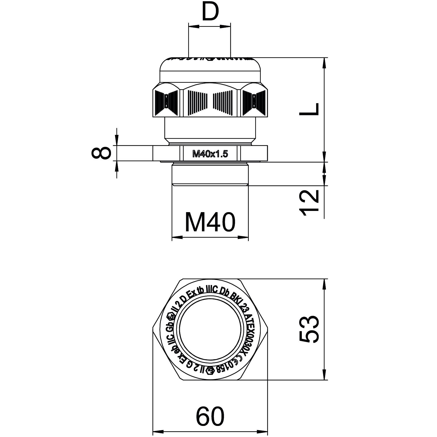 Kabelverschraubung mit EG-Baumusterprüfbescheinigung für Geräte und Schutzsysteme zur bestimmungsgemäßen Verwendung in explosionsgefährdeten Bereichen. Richtlinie 2014/34/EU.