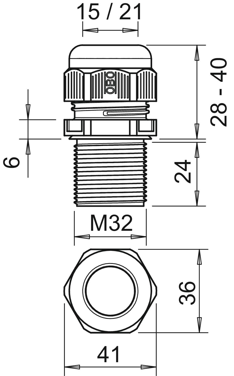 Kabelverschraubung mit metrischem Anschlussgewinde in Hutmutterbauart, für Kabelabzweigkästen, Gehäuse, Verteilerschränke im privaten und industriellen Bereich. Mit Zugentlastung und integrierter Dichtlippe, geprüft nach DIN EN 62444. Schutzklasse IP68. Einsetzbar von -20°C bis +65°C.