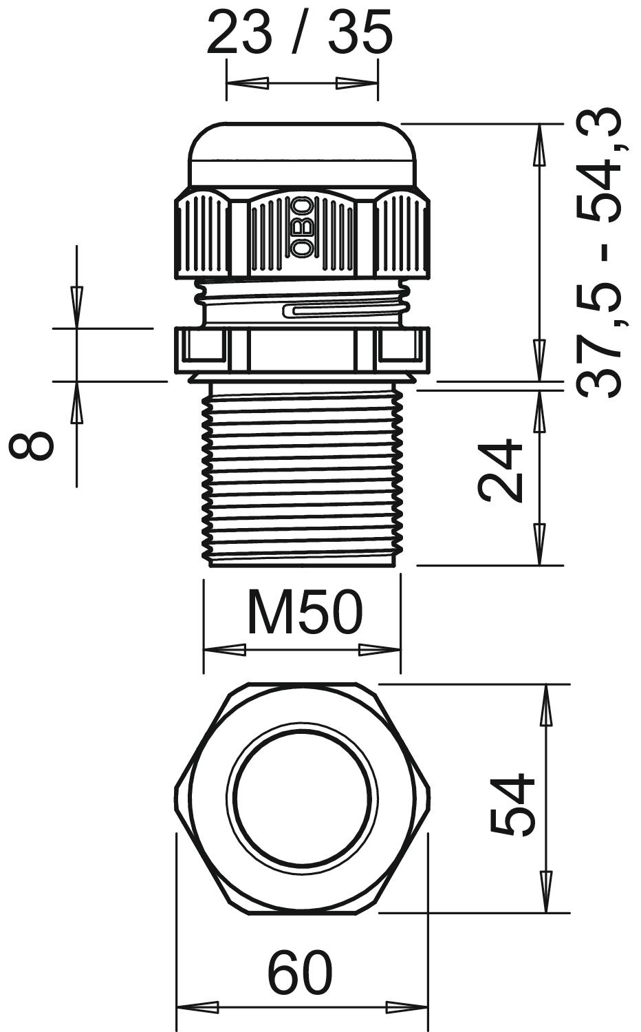 Kabelverschraubung mit metrischem Anschlussgewinde in Hutmutterbauart, für Kabelabzweigkästen, Gehäuse, Verteilerschränke im privaten und industriellen Bereich. Mit Zugentlastung und integrierter Dichtlippe, geprüft nach DIN EN 62444. Schutzklasse IP68. Einsetzbar von -20°C bis +65°C.