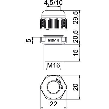 Kabelverschraubung mit metrischem Anschlussgewinde in Hutmutterbauart, für Kabelabzweigkästen, Gehäuse, Verteilerschränke im privaten und industriellen Bereich. Mit Zugentlastung und integrierter Dichtlippe, geprüft nach DIN EN 62444. Schutzklasse IP68. Einsetzbar von -20°C bis +65°C.