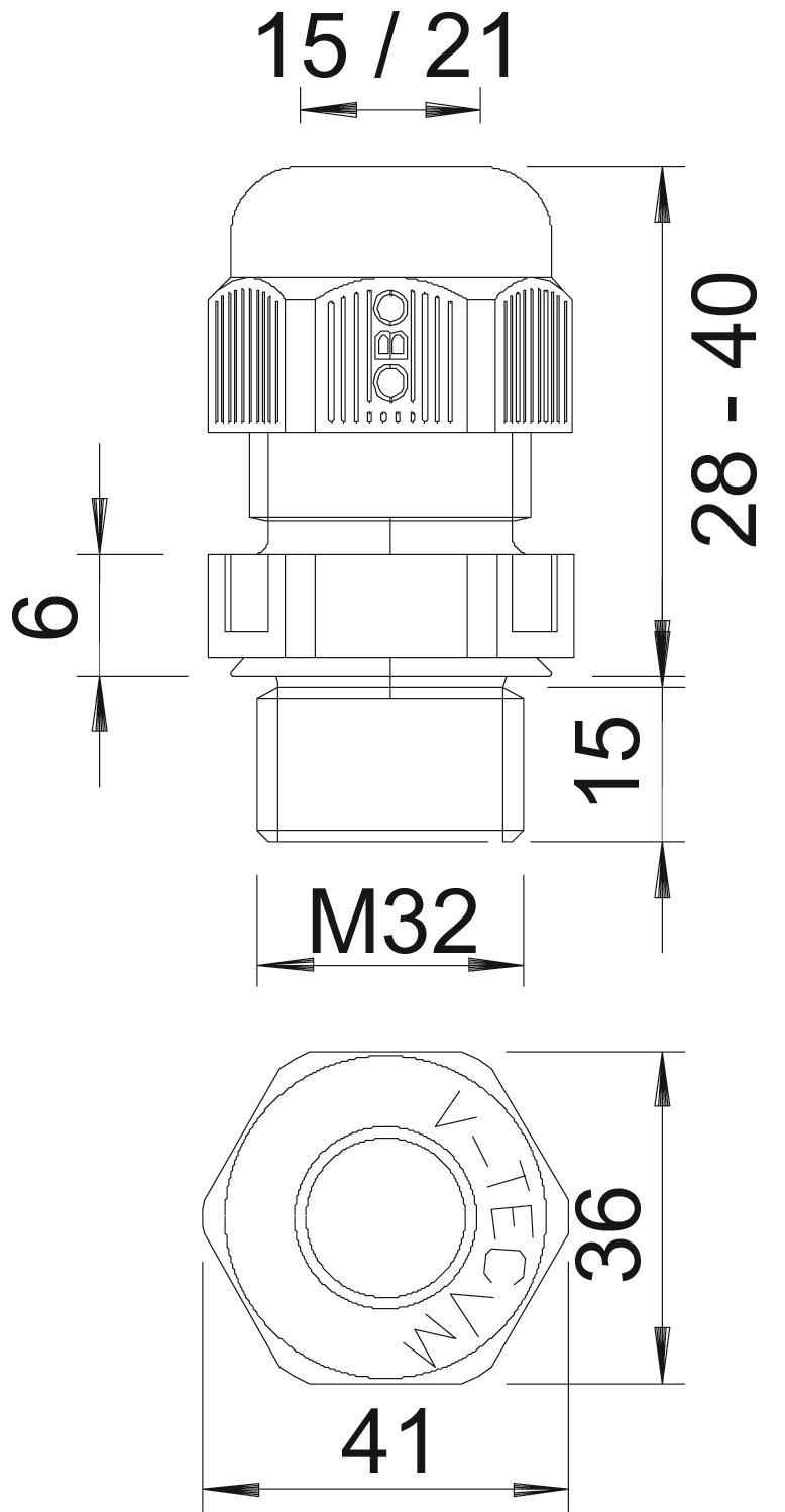 Kabelverschraubung mit metrischem Anschlussgewinde in Hutmutterbauart, für Kabelabzweigkästen, Gehäuse, Verteilerschränke im privaten und industriellen Bereich. Mit Zugentlastung und integrierter Dichtlippe, geprüft nach DIN EN 62444. Schutzklasse IP68. Einsetzbar von -20°C bis +65°C.
