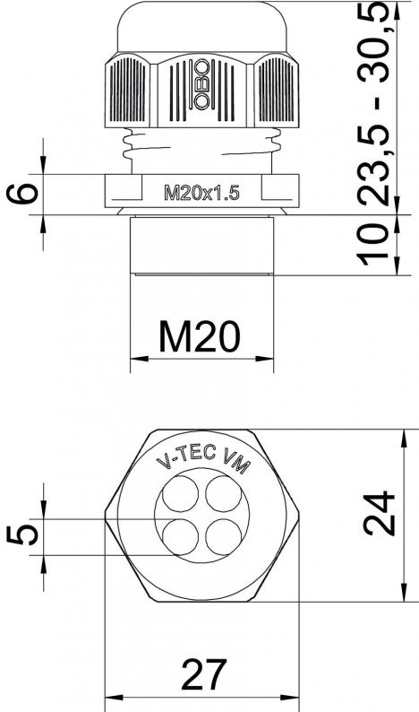 Kabelverschraubung mit metrischem Anschlussgewinde in Hutmutterbauart, für Kabelabzweigkästen, Gehäuse, Verteilerschränke im privaten und industriellen Bereich. Mit Zugentlastung und integrierter Dichtlippe, geprüft nach DIN EN 62444. Schutzklasse IP68. Einsetzbar von -20°C bis +65°C.