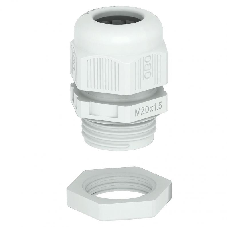 Kabelverschraubung, metrisches Gewinde, Set mit Gegenmutter, lichtgrau