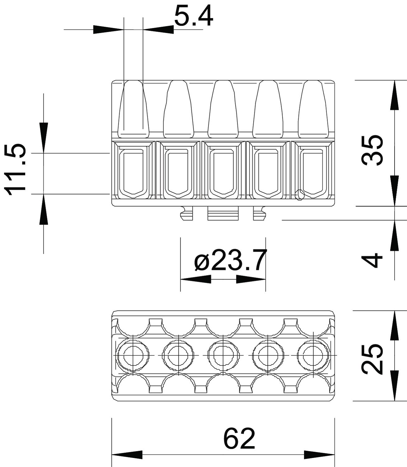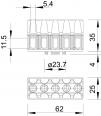 Klemmkörper und Schrauben aus Stahl, galvanisch verzinkt und transparent passiviert, Nennquerschnitt 1,5 ÷ 6 mm², Nennspannung 400 V, 5-polig, mit Buchsenklemmen max. anschließbare Querschnitte je Klemmstelle: 3x6mm², 4x4mm² oder 6x2,5mm².