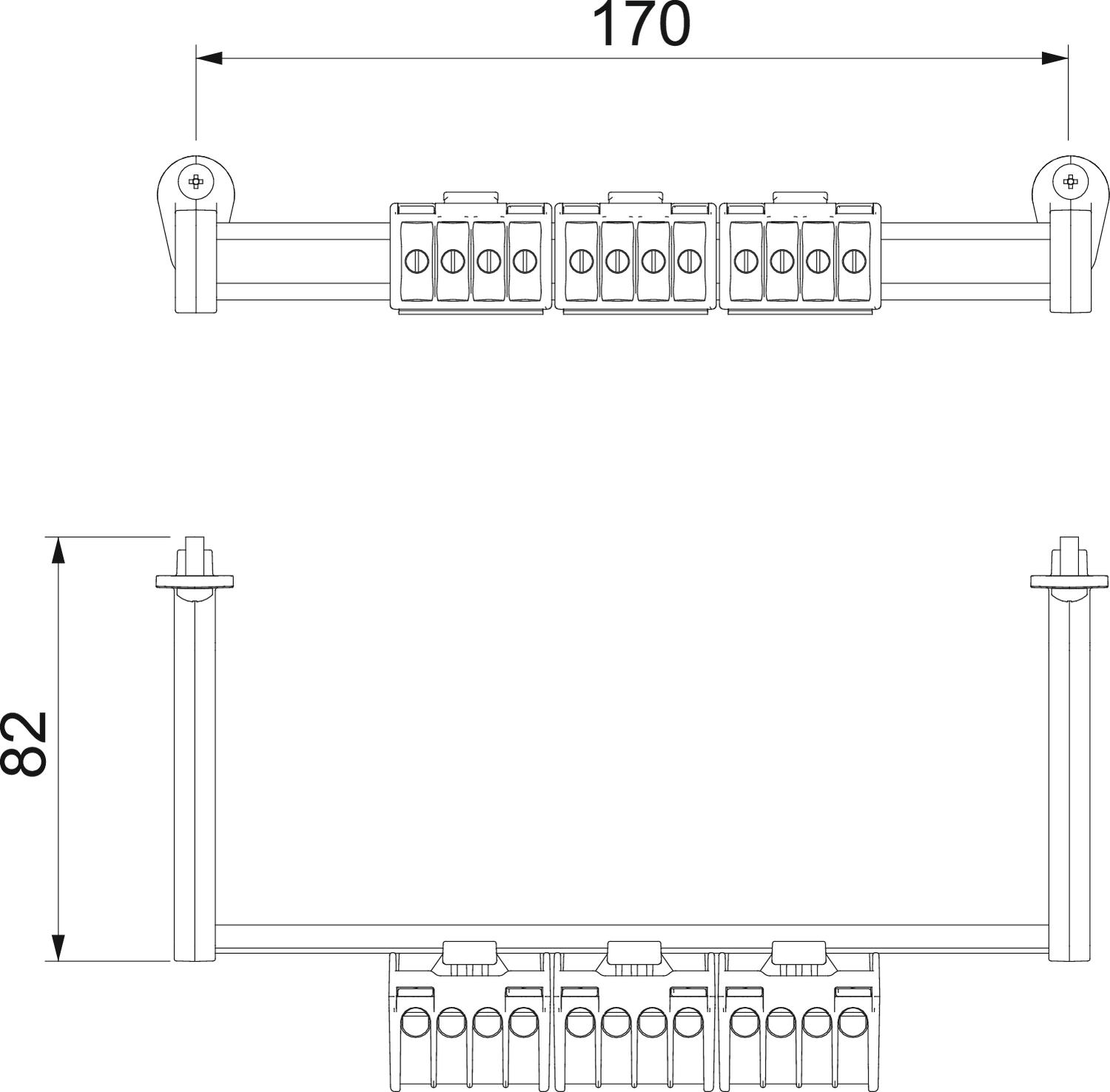 Montageanleitung; Hutschiene mit entsprechendem Träger und Befestigungsmaterial; Schutzleiterklemme 16 mm²; Neutralleiterklemme 16 mm²