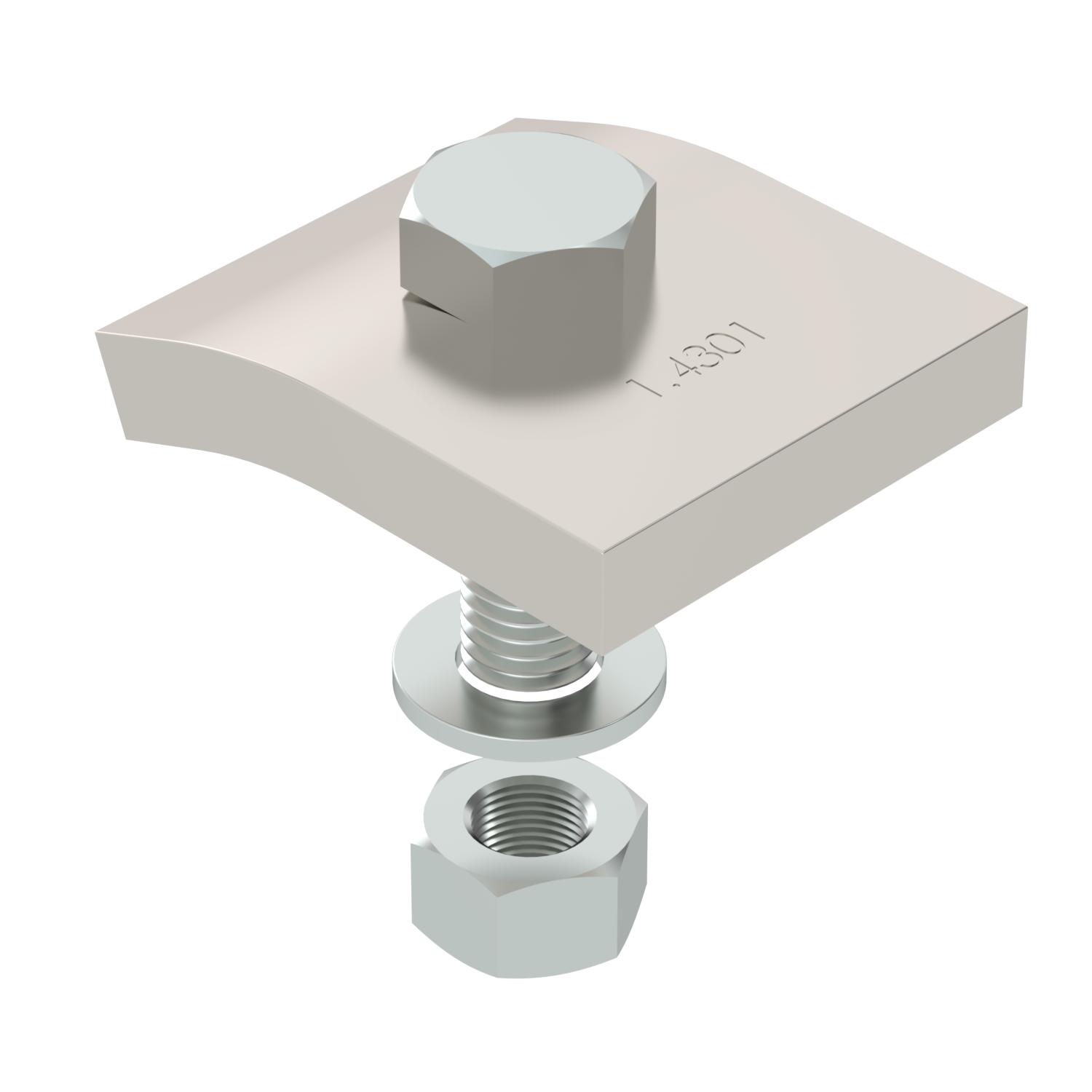 Klemmwinkel mit Sechskantschraube Typ KWS zur direkten Befestigung von Konstruktionen an Stahlträgerflanschen.