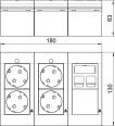 Kompletteinheit, 3-fach, 2 x 2 Schutzkontakt-Steckdosen mit Kontrolllicht, 1 x Datentechnikträger