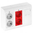 - 1x Schutzkontakt-Steckdose 2fach, in 33° Steckrichtung, Farbe: rot, inklusive Glimmlampen-Element als Kontrollleuchte.