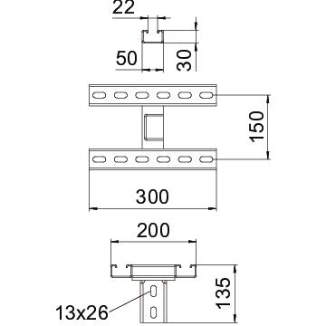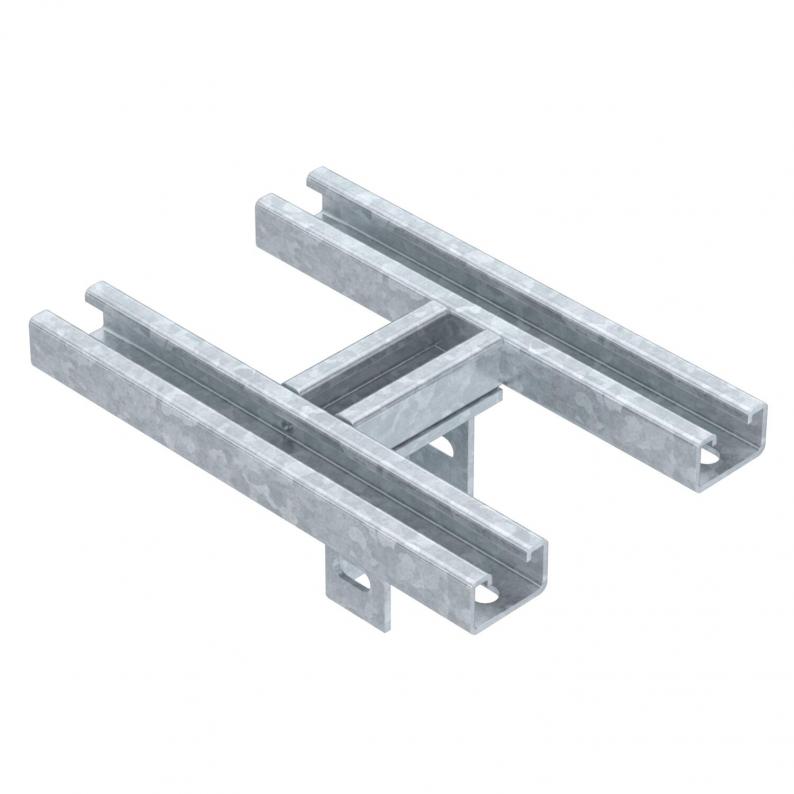 Kopfplatte in schwerer Ausführung mit zwei angeschweißten MS5030-Profilschienen, zum Erstellen von Hängestielen in Verbindung mit US 7-Stielen. Montage an Stahlkonstruktionen mit Spannklauen. Kabeltrassenverlauf parallel zu den Profilschienen. Inklusive Befestigungsmaterial für US 7-Stiel.