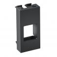 Multimediaträger für Keystone-Module ohne Anschlussbusche. Montageöffnung Keystone Typ C. Trägerplatte mit Rastbefestigung, geeignet für den senkrechten Einbau in die Systemumgebung. Zur Installation in der Deskbox DBL.