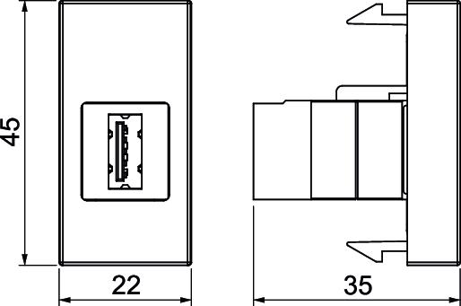 Multimediaträger mit einer USB 3.0-Anschlussbuchse. USB 3.0 Typ-A Buchse auf USB 3.0 Typ-A Buchse, 1:1 Kuplung. Trägerplatte mit Rastbefestigung, geeignet für den senkrechten Einbau in die Systemumgebung. Zur Installation in der Deskbox DBL.