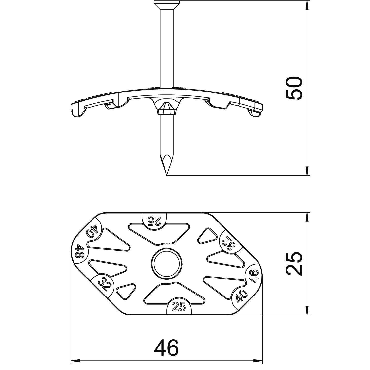 Nagelschelle Nagel-Fix 2.0 mit vormontiertem verzinkten Stahlnagel, zum Fixieren von Leitungen in Mauerschlitzen von 25 - 46 mm und auf Mauerwerk.