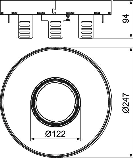 Nivellierbare Kassette mit Schnurauslass, 3-zügig. Es können 2 Abdeckplatten APMT2 und eine APMT5 installiert werden. Für den Einbau von 2 Universalträgern UT3 und einem UT4 für 7 Einzel-Installationsgeräte mit Tragering/Tragebügel oder 10 Modul 45-Geräte. Der Tubus ist nicht im Lieferumfang enthalten.