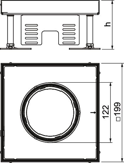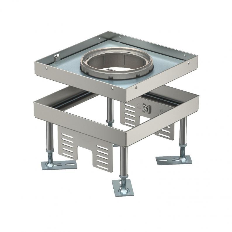 Nivellierbare quadratische Kassette Schwerlast für Tubus der Nenngröße 4 für den Einbau von Installationsgeräten in Kanalsystemen, Doppel- und Hohlböden in trocken oder nass gepflegten Fußböden im Innenbereich. Belastungsklasse 1 bis 10 kN.