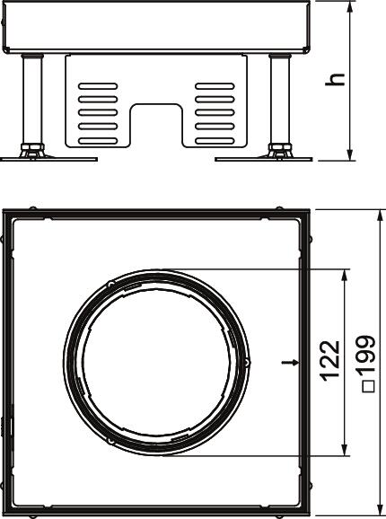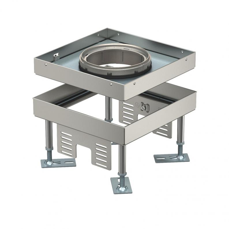 Nivellierbare quadratische Kassette Schwerlast für Tubus der Nenngröße 4 für den Einbau von Installationsgeräten in Kanalsystemen, Doppel- und Hohlböden in trocken oder nass gepflegten Fußböden im Innenbereich. Belastungsklasse 1 bis 10 kN.