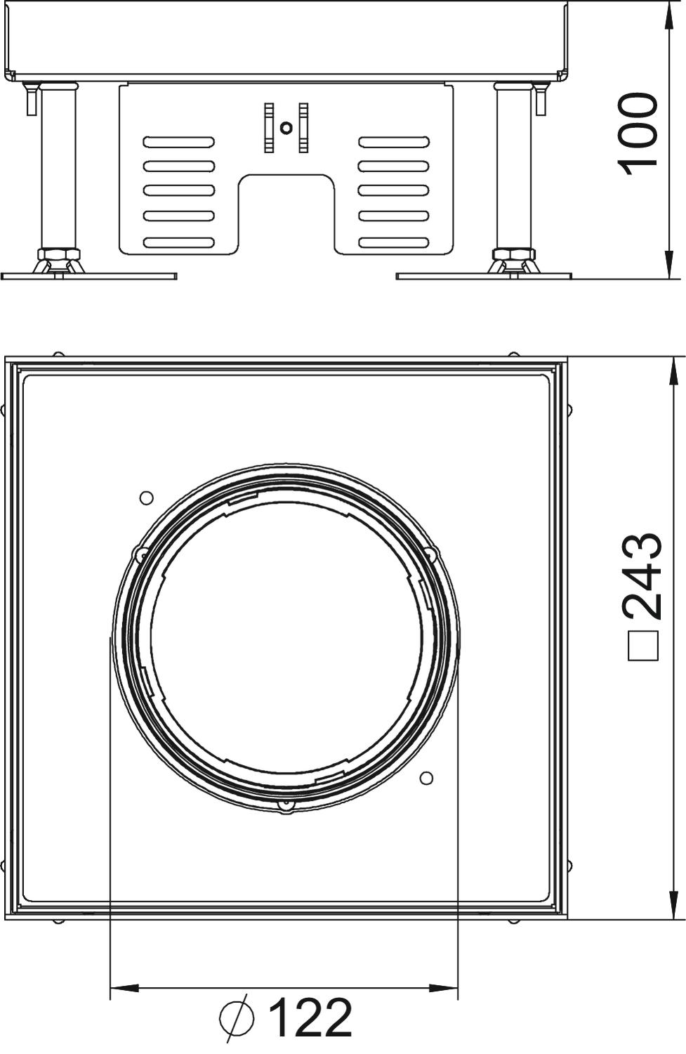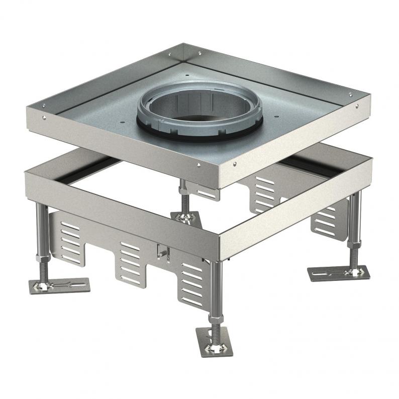 Quadratische Kassette Schwerlast für Tubus in Nenngröße 9 für den Einbau von Installationsgeräten in Kanalsystemen, Doppel- und Hohlböden, in trocken oder nass gepflegten Fußböden im Innenbereich. Belastungsklasse 1 bis 10 kN.