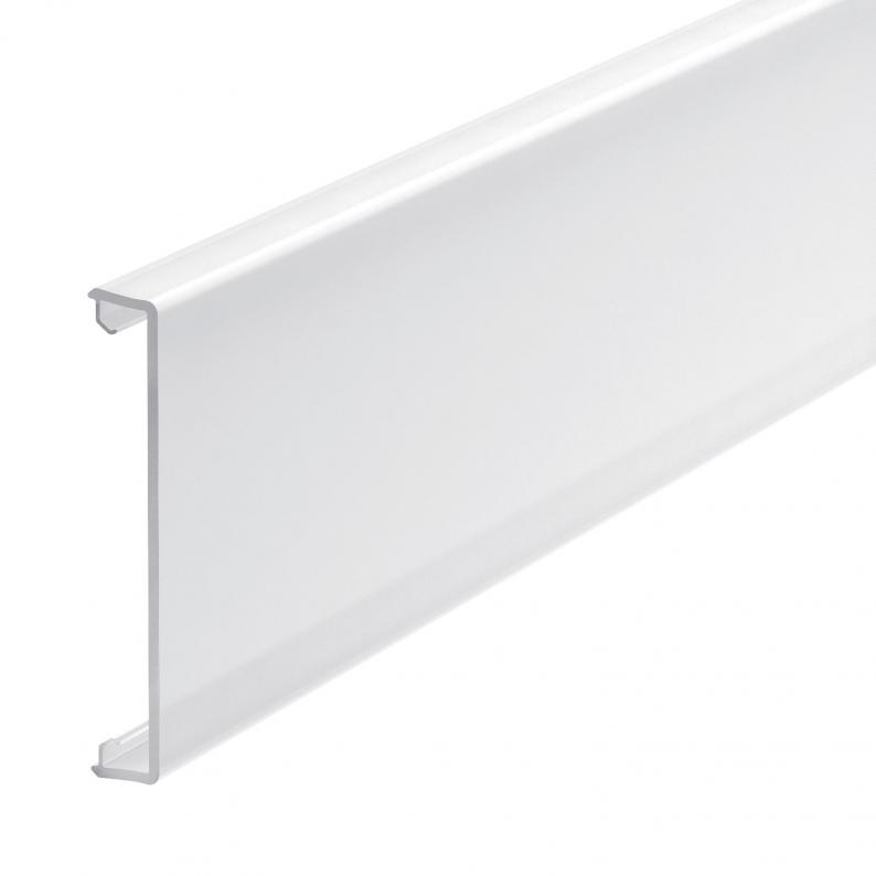Kanaloberteil zum Verschließen der Geräteeinbaukanäle Rapid 80 GK (PVC), GS (Stahl), GA (Aluminium) und ISS Installationssäulen mit 76,5 mm Systemöffnung. Das Oberteil GK-OTGO ist aus einem lichtdurchlässigen, aber milchigen (Optik: geschliffenes Glas) PC-Material hergestellt und eignet sich somit zur Integration von Beleuchtung in den Kanälen bzw. Säulen.