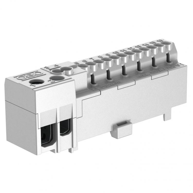 Phasen- Anschlußklemme mit 12 Steckklemmstellen 2,5mm²; zwei Steckklemmstellen 4 mm² und zwei Schraubeanschlußklemmstellen 16/25mm².