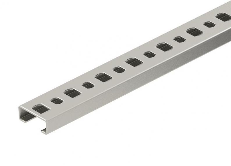 Leichte C-Profilschiene zur Kabelverlegung, in Verbindung mit Reihenschellen oder Bügelschellen mit N-Fuß. Auch verwendbar im Schaltschrankbau.