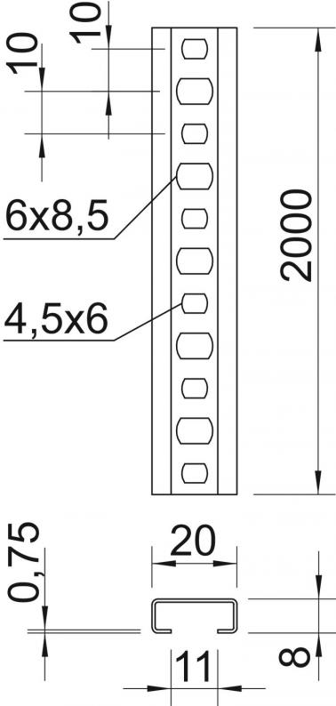 Profilschiene CL2008, Schlitz 11 mm, gelocht