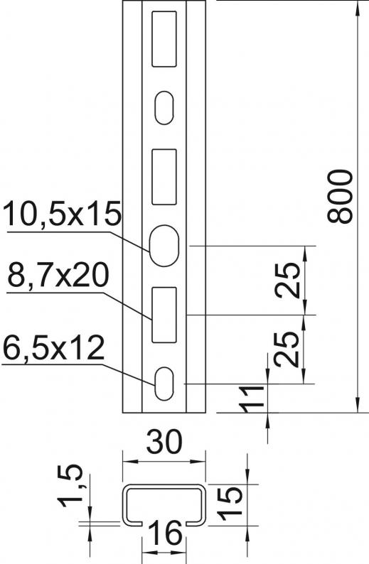 Profilschiene, gelocht, mit 16 mm Schlitzweite.