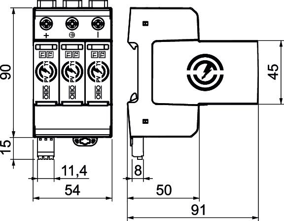 • Ableitvermögen bis 6,25 kA (10/350) und 40 kA (8/20) pro Pol