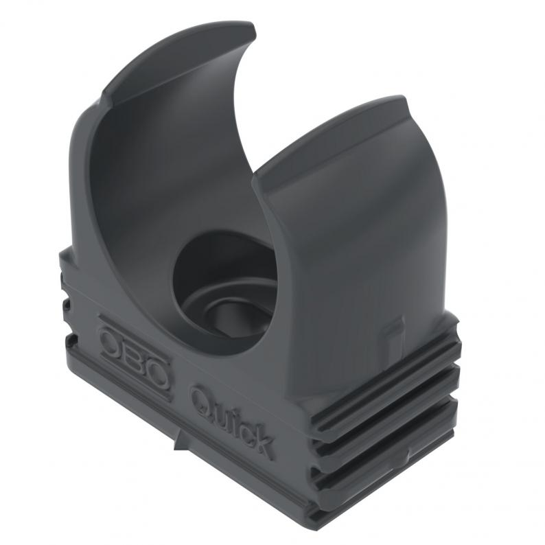 Aufputzschelle zur Aufnahme von metrischen Stahlpanzerrohren, leichten und schweren Isolierrohren sowie Elektroinstallationsrohr Quick-Pipe. Universelle Befestigungsmöglichkeiten an Wand und Decke im Innen- und geschützten Außenbereich. Mit Langloch zum seitlichen Ausrichten bei Montage mit Holzschraube oder Schlagdübel. Werkzeuglose Rohrmontage. Aneinander reihbar auch mit OBO Multi-Quick- oder proQuick-Schelle. Größe M16 - M32 kann auf Gewinde M6 geschraubt werden. Befestigungsabstand 50 - 60 cm, max. Auszugswerte F bei 20° C Raumtemperatur siehe Tabelle.