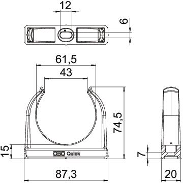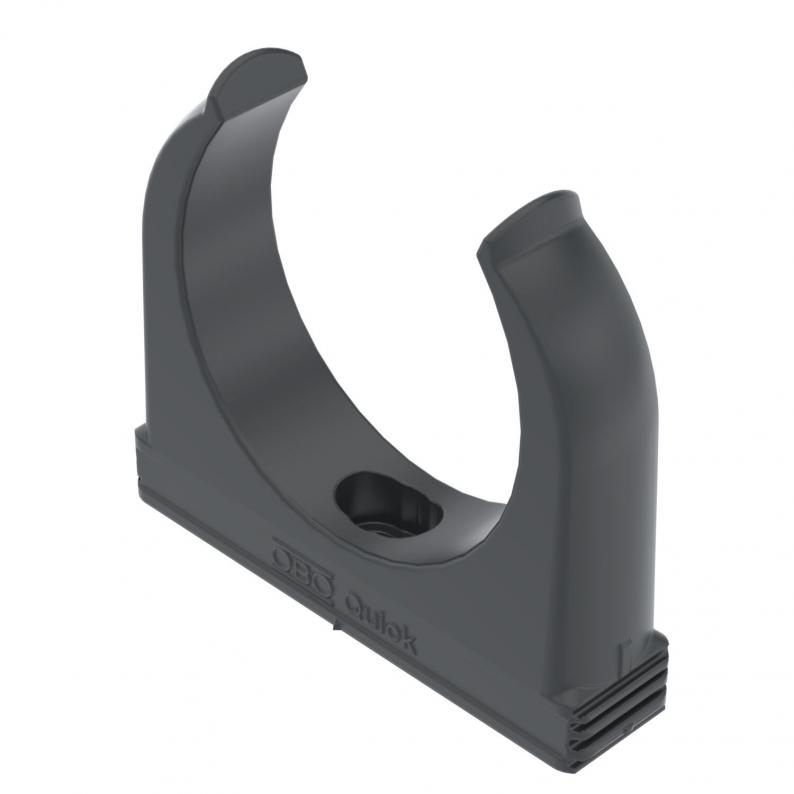 Aufputzschelle zur Aufnahme von metrischen Stahlpanzerrohren, leichten und schweren Isolierrohren sowie Elektroinstallationsrohr Quick-Pipe. Universelle Befestigungsmöglichkeiten an Wand und Decke im Innen- und geschützten Außenbereich. Mit Langloch zum seitlichen Ausrichten bei Montage mit Holzschraube oder Schlagdübel. Werkzeuglose Rohrmontage. Aneinander reihbar auch mit OBO Multi-Quick- oder proQuick-Schelle. Größe M16 - M32 kann auf Gewinde M6 geschraubt werden. Befestigungsabstand 50 - 60 cm, max. Auszugswerte F bei 20° C Raumtemperatur siehe Tabelle.