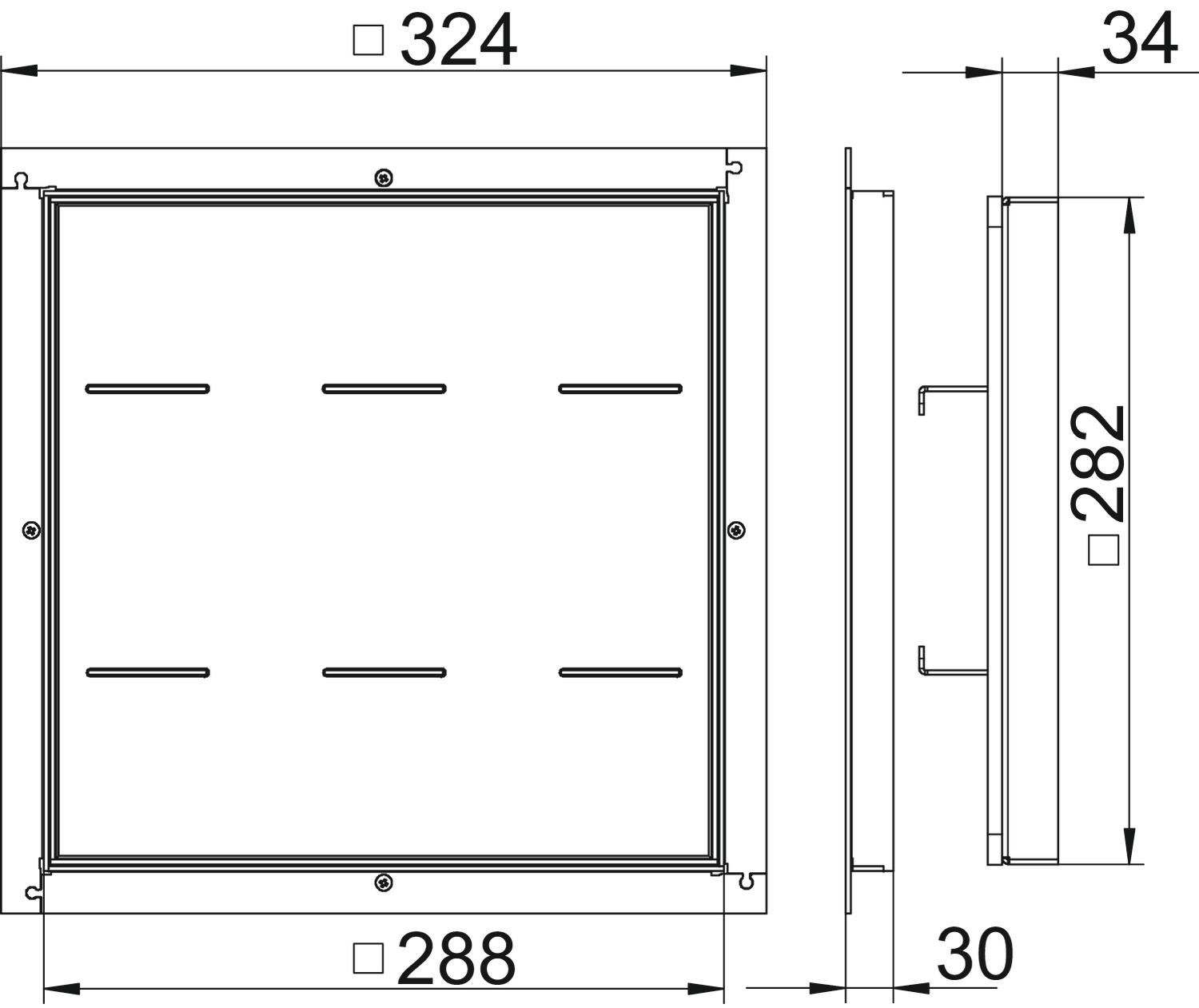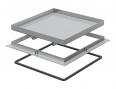 Rahmenkassette Schwerlast "blind" für die Herstellung einer Revisionsöffnung in der UZD250-3 in trocken oder nass gepflegten Fußböden im Innenbereich. Belastungsklasse 1 bis 10 kN. Nur für glatte Bodenbeläge geeignet.