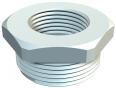 Reduktion mit metrischem Innen- und Außengewinde für die Montage von Kunststoff-Kabelverschraubungen an Gehäusen. Schutzart IP54 ohne zusätzliche Anschlussdichtung. Schutzart bis IP68 möglich mit zusätzlicher Anschlussdichtung, zum Beispiel O-Ring oder Flachdichtring.