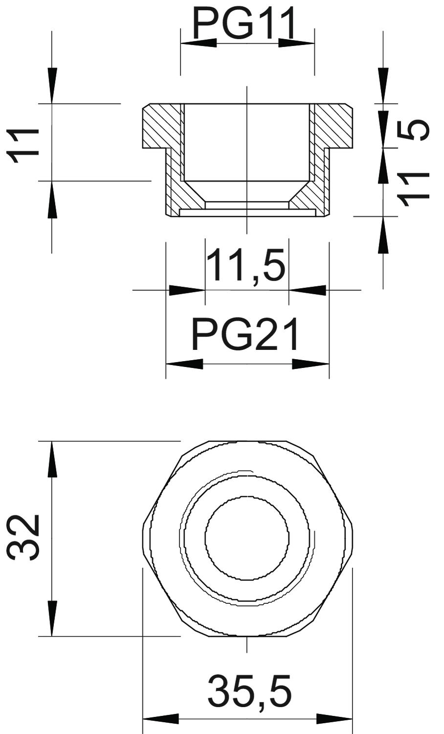 Reduktion mit PG-Innen- und -Außengewinde nach DIN 40430 für die Montage von Kunststoff-Kabelverschraubungen an Gehäusen. Schutzart IP54 ohne zusätzliche Anschlussdichtung. Schutzart bis IP68 möglich mit zusätzlicher Anschlussdichtung, zum Beispiel O-Ring oder Flachdichtring.