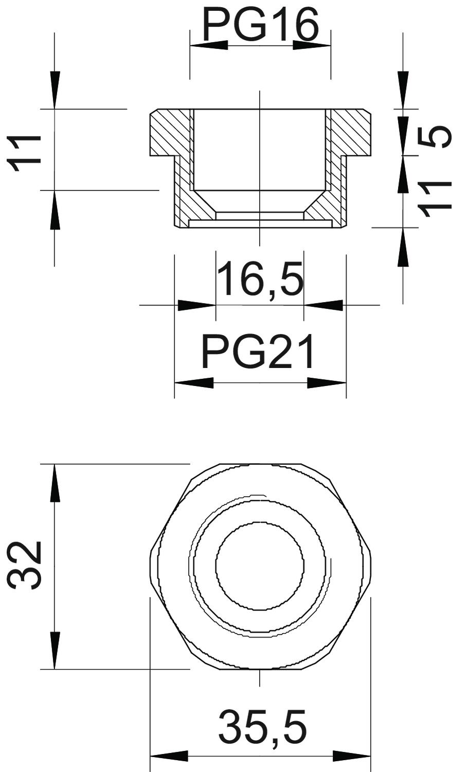 Reduktion mit PG-Innen- und -Außengewinde nach DIN 40430 für die Montage von Kunststoff-Kabelverschraubungen an Gehäusen. Schutzart IP54 ohne zusätzliche Anschlussdichtung. Schutzart bis IP68 möglich mit zusätzlicher Anschlussdichtung, zum Beispiel O-Ring oder Flachdichtring.
