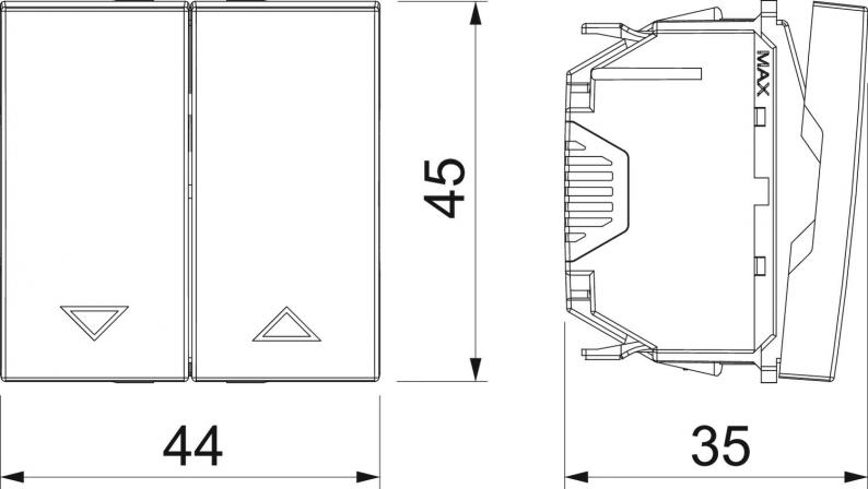 Rollladenschalter mit elektrischer und mechanischer Verriegelung, 1-polig, 10 A, 250 V~, mit Steckklemmen.