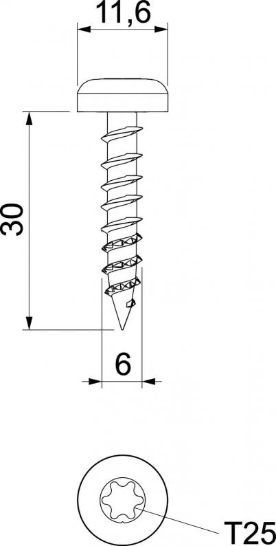 Schraube mit speziellen Fräsrippen für Brandschutzkanal PYROLINE® Con S, zur Befestigung von Trennstegen im Kanal.