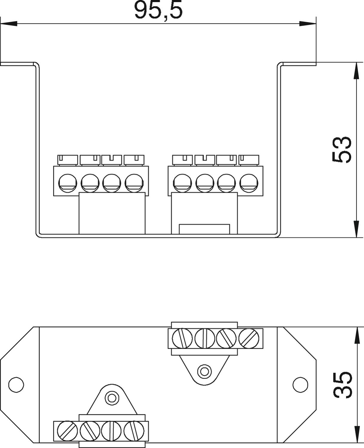 - Grundelement mit Hutschiene 35 mm, N-Klemmleiste 4 x 10 mm² und PE-Klemmleiste 4 x 10 mm²