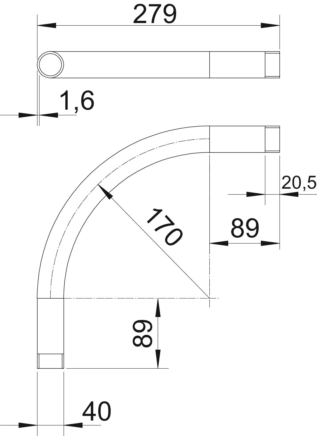 | Winkel des Bogens | 90 ° |